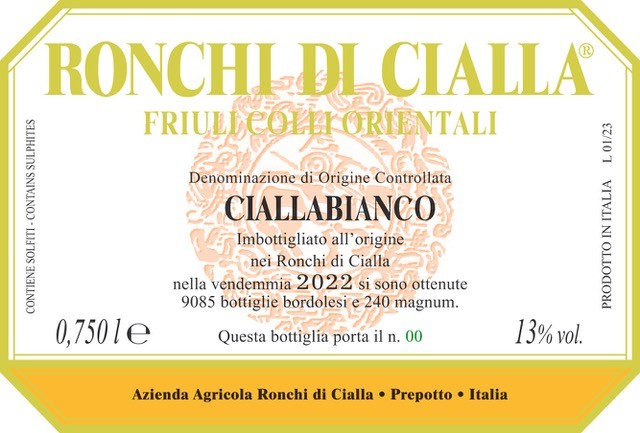 Cialla is a monopole appellation, a recongized sub-zone of Collio Orientali del Friuli where Ronchi di Cialla is the only producer.